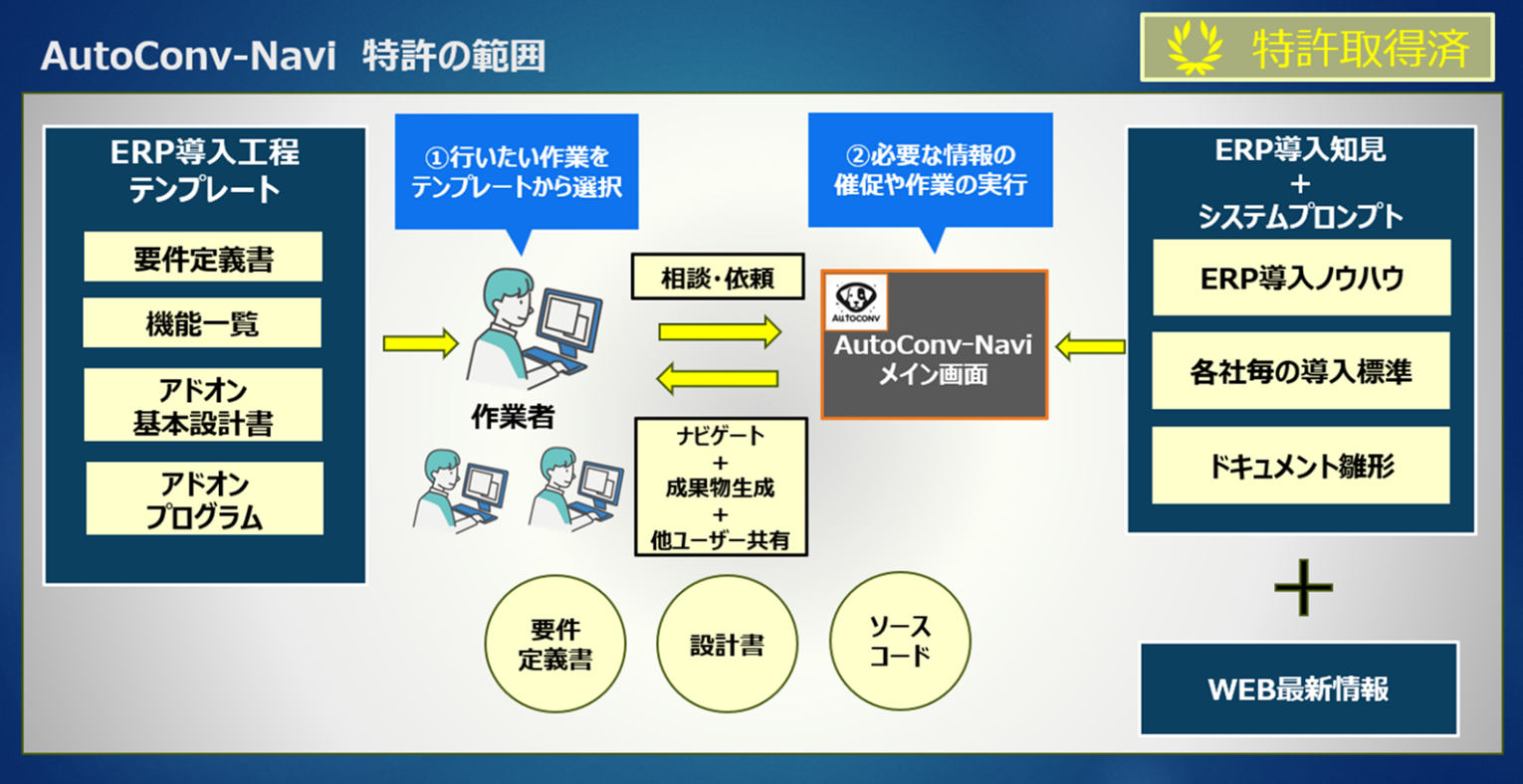 本ツールが新規に取得した特許によりプロジェクトの進行をスムーズにし、ERP導入プロジェクトの成功に寄与します。